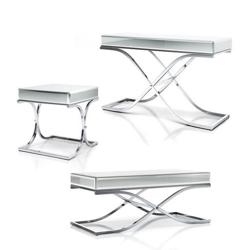 View full detailsAlluring glam design with soft romantic elements yields elegance in this modern metal coffee table set. Enjoy the ornately curved end units that co...