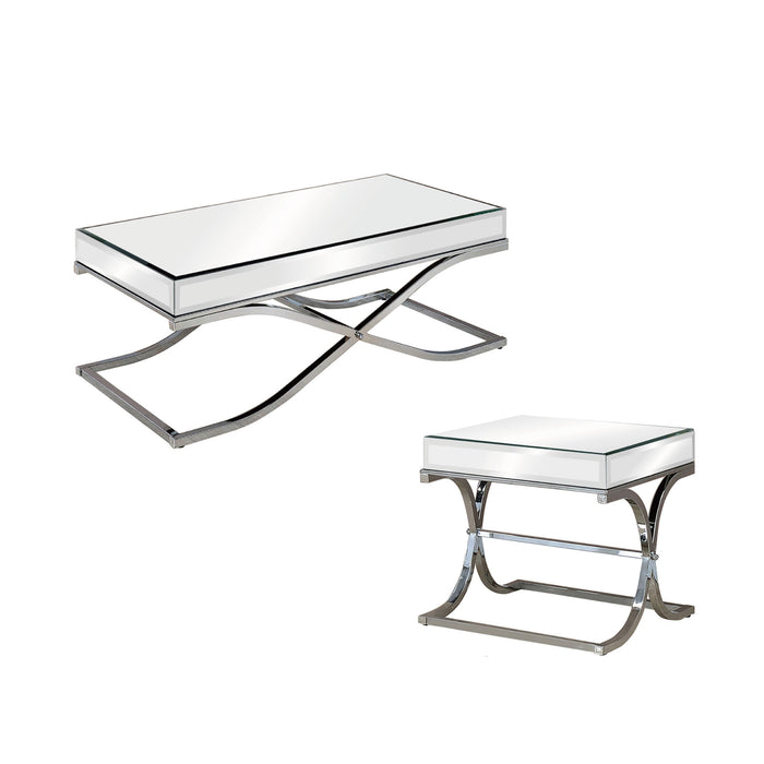 Pellias Glam Chrome and Mirrored 2-Piece Coffee Table Set