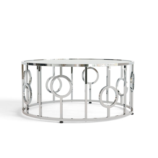 View full detailsPerfect for a modern-style home, this round metal and glass coffee table makes a striking addition to a living room seating area. Featuring a steel...