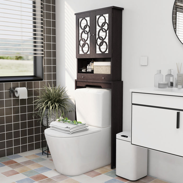 Cirka Cappuccino Inlay Mirrored Bathroom Storage Cabinet with Drawer