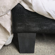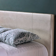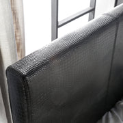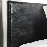Express your adventurous side with a bold bedroom accent. This fake crocodile leather upholstered bed does not hold back on speaking for your character. The wild texture snakes along the rails and low-profile footboard for a daring design.