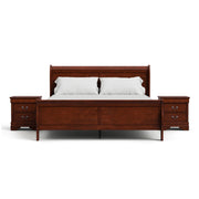 Devi Traditional Solid Wood 3-Piece Bed and 2-Nightstand Bedroom Set