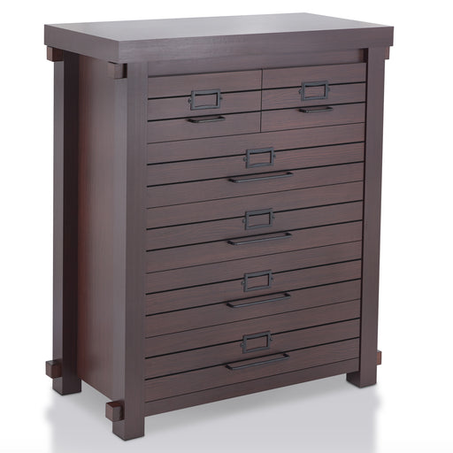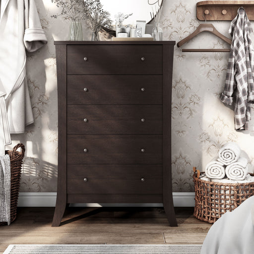 View full detailsSimplify your bedroom organization by storing your clothes inside the multitude of drawers this wood espresso tall dresser comes with! The sleek cu...