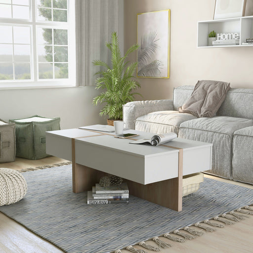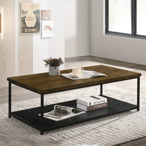View full detailsThis striking two-tone coffee table features a modern design that instantly draws the eye. Fashioned in a warm reclaimed oak finish with realistic ...