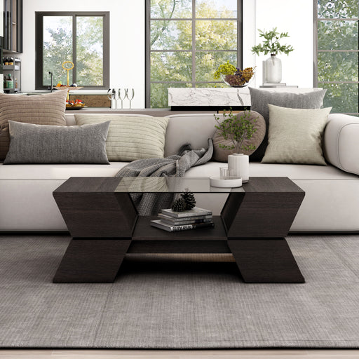 View full detailsModern in design, this black and tempered marble glass coffee table is perfect for an urban home blending classic sophistication with engaging, min...