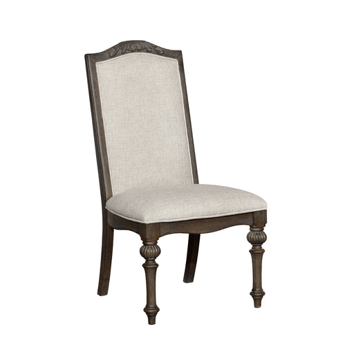 View full detailsWith a scrolled wood inlay, this transitional side chair set offers both style and functionality to any dining room. The rustic natural tone finish...
