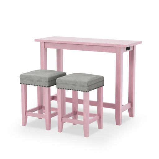 View full detailsCreate a cozy place to enjoy weekday breakfasts and a quick lunch with the three-piece counter-height dining table set. The black frame of the stoo...