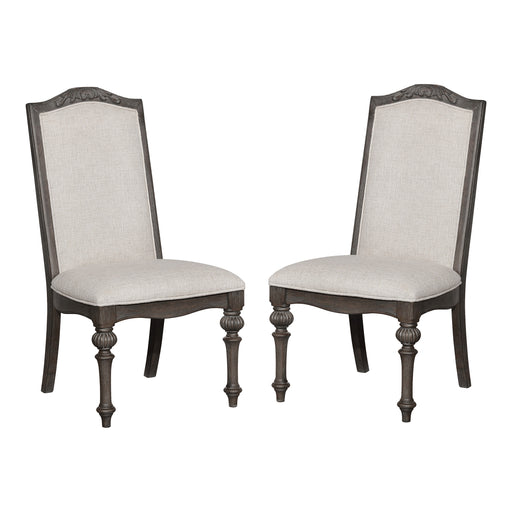 View full detailsWith a scrolled wood inlay, this transitional side chair set offers both style and functionality to any dining room. The rustic natural tone finish...