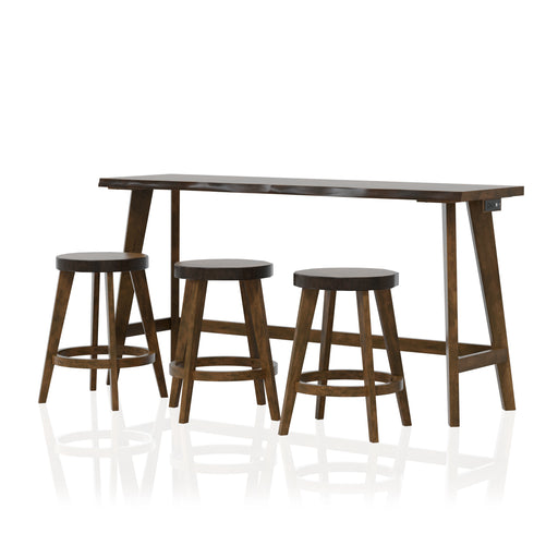 View full detailsAn oak finish tabletop adds natural, rugged appeal to this transitional wood counter height table. Featuring a contrasting base design in antique f...