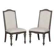 With a scrolled wood inlay, this transitional side chair set offers both style and functionality to any dining room. The rustic natural tone finish and ivory fabric add wonderful charm and character.