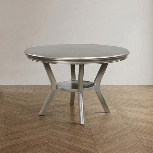 View full detailsCreate an inviting and sophisticated ambiance with this stunning round dining table. Sleek champagne finished frame features a spacious tabletop wi...