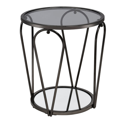 View full detailsEye-catching details and bold curves ensure that this modern round end table captures attention in your home. A sophisticated design, the table fea...