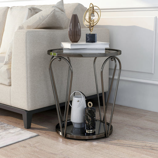 View full detailsModern in design, this black and tempered marble glass end table is perfect for an urban home blending classic sophistication with engaging, minima...