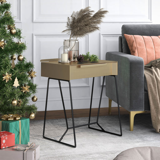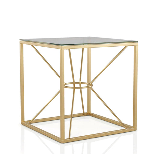 View full detailsBring a slight touch of gold accent to a living room with this end table. Its steel base and its unique glam-inspired geometric design lends just t...