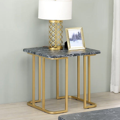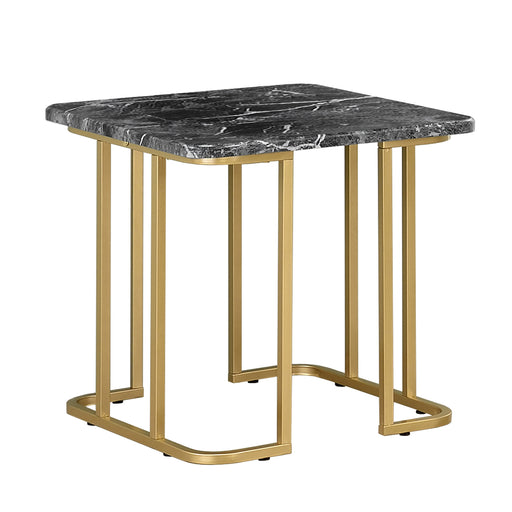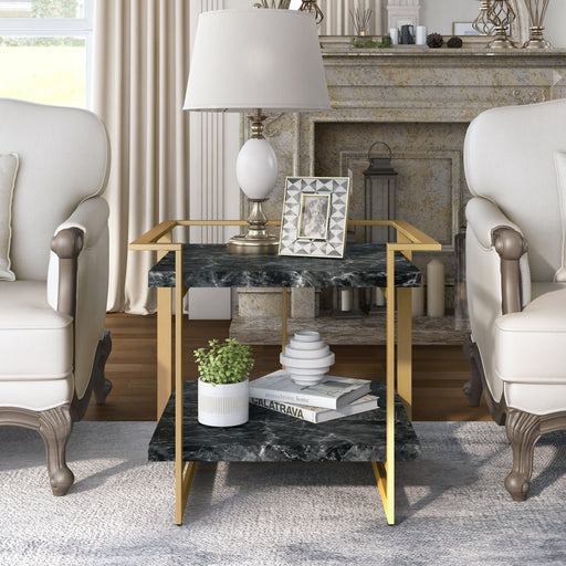 View full detailsEnhance the decor of any living space with this opulent modern and convenient faux marble end table. The handsome black faux marble top sits on a g...