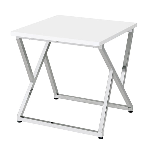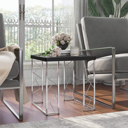 View full detailsStep up the style in your contemporary living room with this instantly eye-catching geometric end table. Designed with the look of a chrome folding...