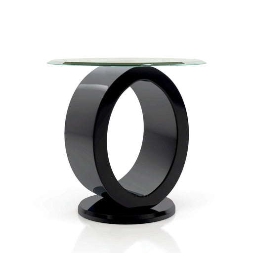 View full detailsThis beautiful high gloss oval glasstop end table in black is perfect for dressing up your home in a unique style. An 8 mm beveled edge transparent...