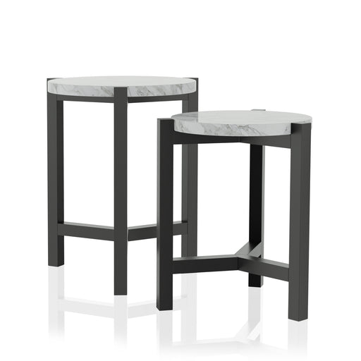 View full detailsFaux marble reinforces the elegant look of this contemporary nesting table set. Featuring a large and a small table, this set is ideal for compact ...