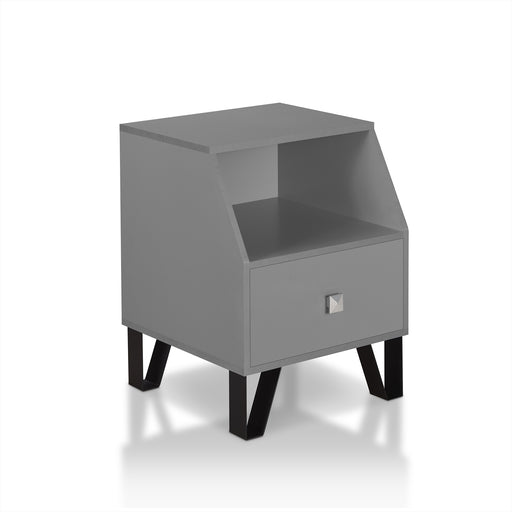 View full detailsAdd a contemporary ambiance with an edge to any living space with the open, airy design of this transitional gray steel and walnut end table. Its f...