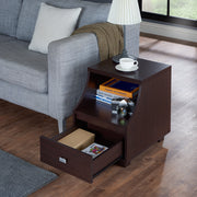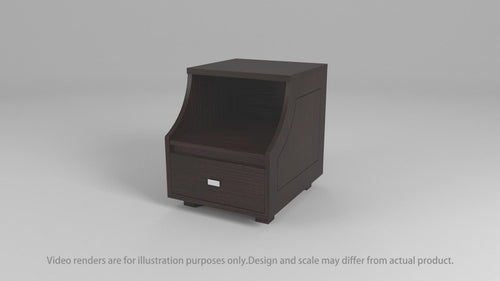 This compact end table is a wonderful addition to any setting with its cut-out curved side panels guarding an open shelf. A handsome walnut finish masks the veneer construction.
