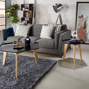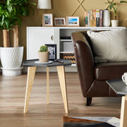 With an eye-catching, geometric design, this modern end table is a stylish choice. Its tapered legs boast a light natural wood finish for a pleasing contrast, while a slightly raised edge on the top keeps belongings safely and securely in place.