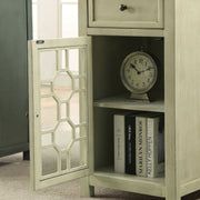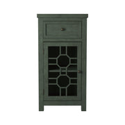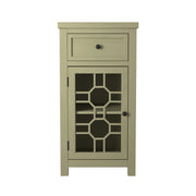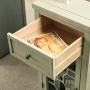 Elevate your living space with this vintage-inspired transitional side table, tastefully designed with cool, geometric wood patterns and a beautiful finish. Equipped with one slide-out drawer and a cabinet with two inner shelves, it keeps things neatly organized while adding eye-catching style to any space.