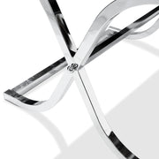 - Curving X-shaped leg design