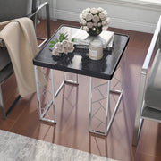 Enhance the decor of any living space with this opulent modern and convenient faux marble end table. The handsome black faux marble top sits on a gleaming metal frame and legs, adding a blend of elegance and glam that matches any the ambiance of any well-appointed living space.