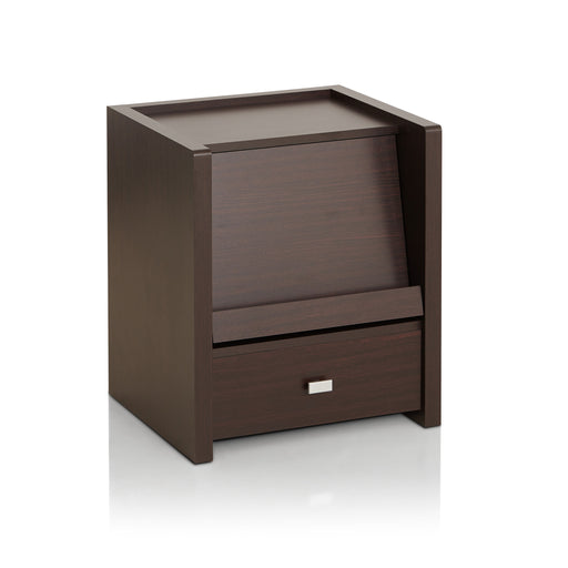 View full detailsTransform your living space into a stylish and organized haven with this Wood veneer constructed end table. Featuring a sleek two-tone black and st...
