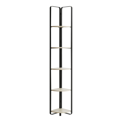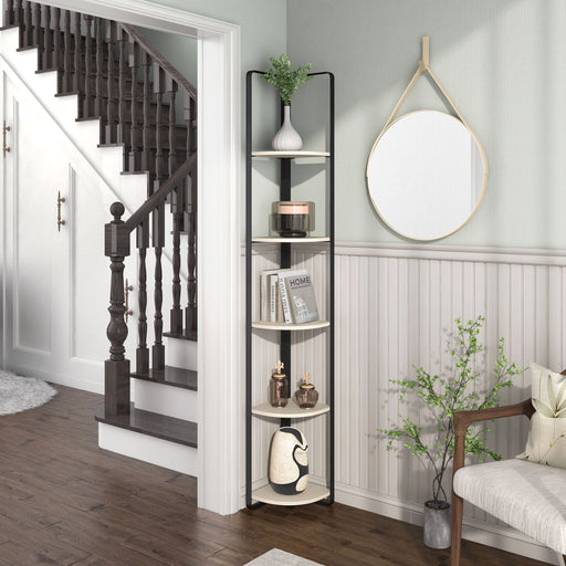 The sleek, quarter circle design and two-tone color scheme bring a touch of modern elegance to your space. With five shelves and an anti-tip kit fo...