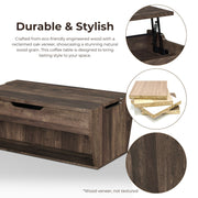 Make your dream of a modern farmhouse a reality with this living room set. The rustic reclaimed oak tone is a warm look that mingles perfectly with soft cream colors. With a lift-top design, the coffee table offers extra storage space for quick de-cluttering when guests visit.