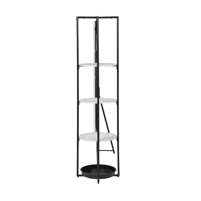 Phebe Black Powder Coated & Stone White 3-Shelf Coat Rack with Mirror