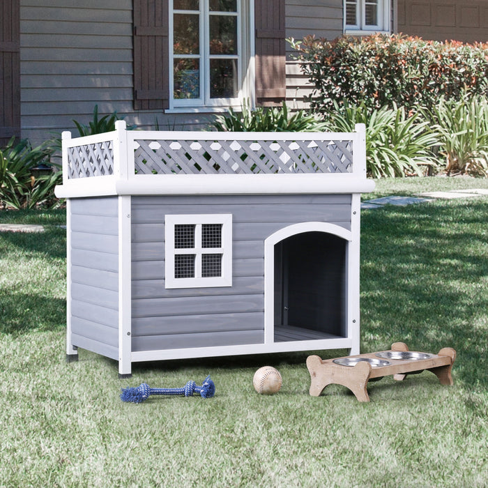 Offering the best in comfort and style, this pet house is crafted with a felt-lined roof thats surrounded by lattice panels and supported on a plank-style frame. The grey and white finish truly brings out the contemporary look and appeal.