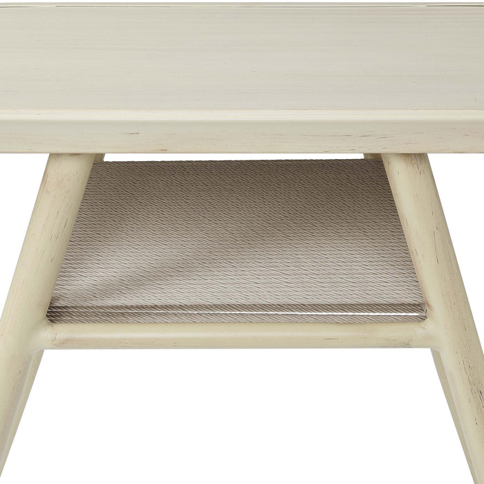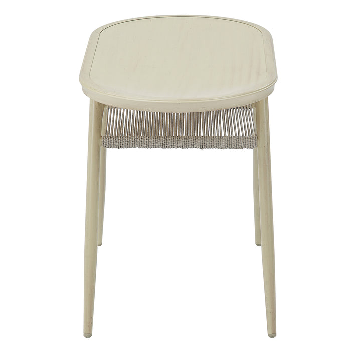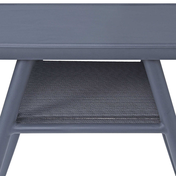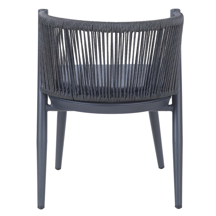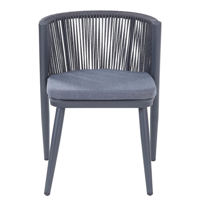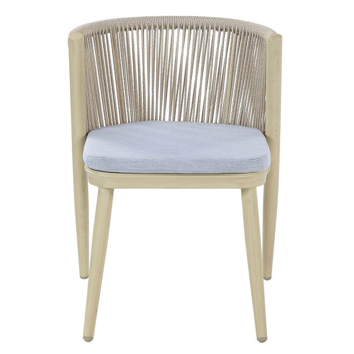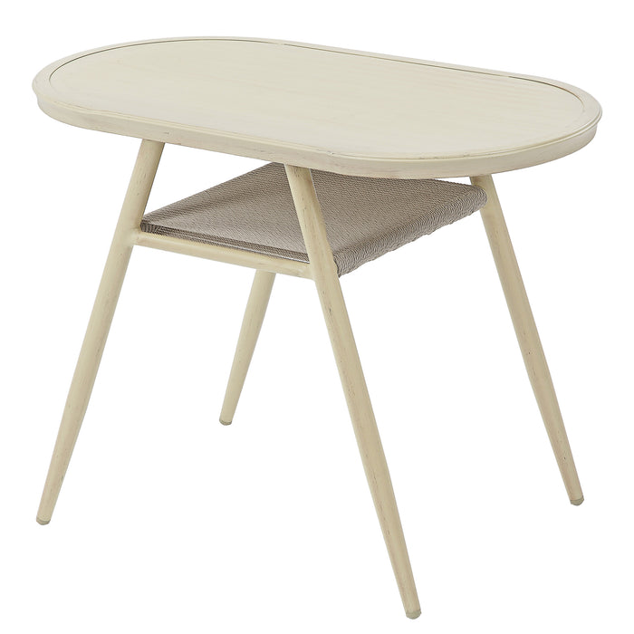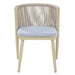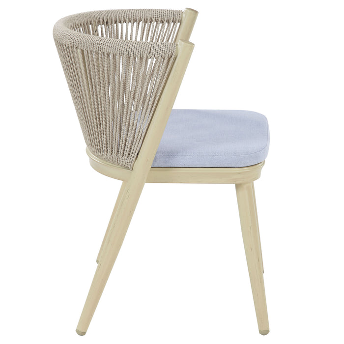 Give your balcony or patio a bohemian update with this 3-piece outdoor set. The design is made with small spaces in mind. Two chairs tuck perfectly within the table for compact storage, while an open wicker rope shelf offers a place to store placemats and coasters. Above functionality comes style itself. Webbed-back chairs highlight the rounded features and the mid-century modern legs of the set.