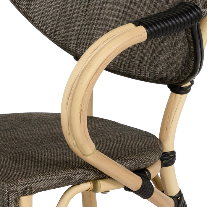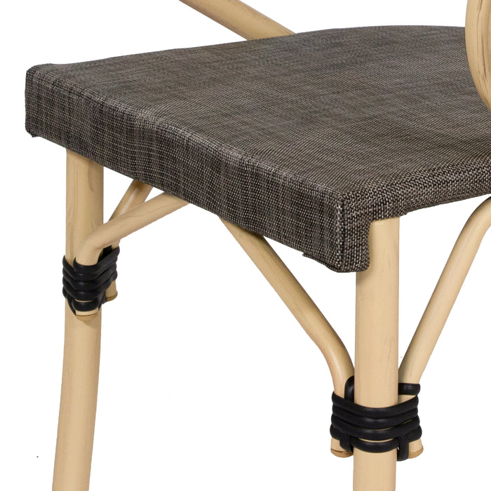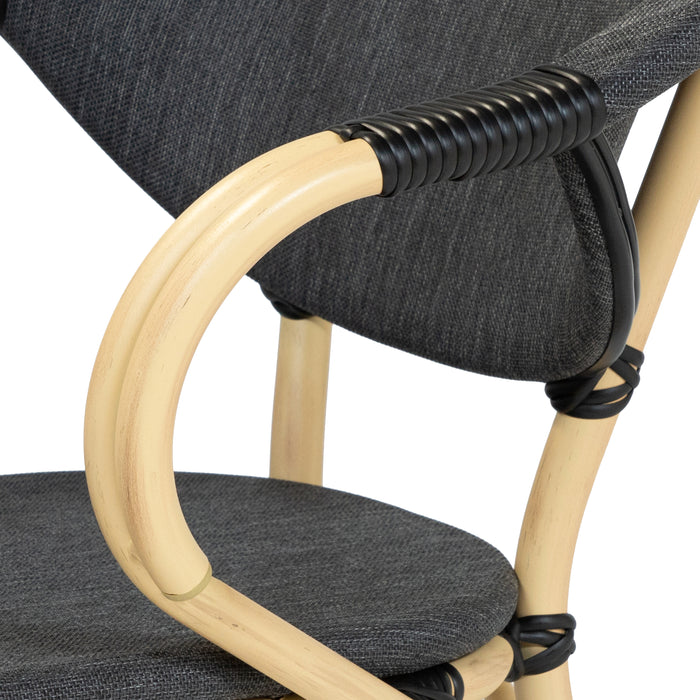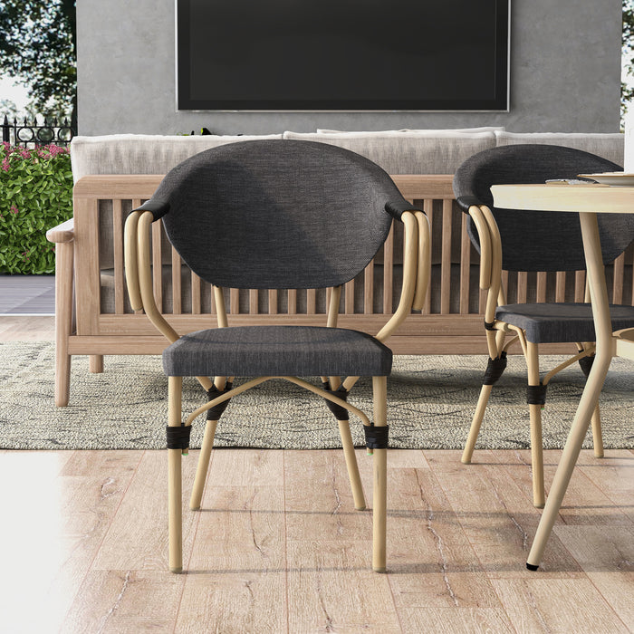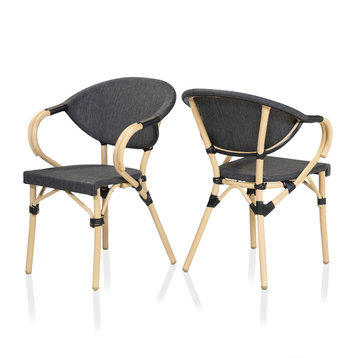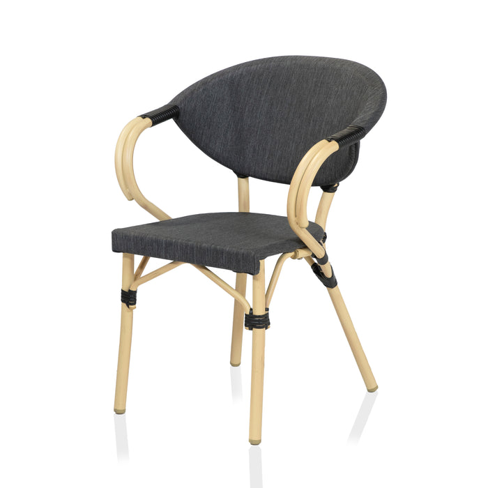 Curved definition gives these side chairs a unique look on the patio. Though the natural tone finish blends into the outdoor setting with ease, the aluminum frame is actually water-resistant. The fabric seat and backrest are also fade-resistant, allowing for the perfect outdoor dining seating.