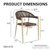 Update your backyard oasis with the contemporary flair of this patio dining chair. Featuring an aluminum frame for durability, it shows off a two-tone finish of dark brown and beige that adds a pop of detail and texture to any deck or patio setting. The chair boasts a woven seat and back, with a gentle curve in the back ensuring comfortable and supportive seating. The curved back wraps to create gently sloping arms, making this chair sure to become a favorite place to lounge.