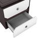 Add a touch of contemporary charm to your home with this stylish end table. Designed with angular cut-out drawer fronts, sleek diamond knobs, and a raised double-decker top, it combines eye-catching details with everyday function. The walnut and white dual-tone finish creates a modern contrast that blends effortlessly with a variety of interiors.