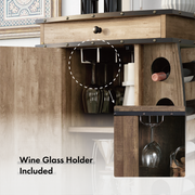 • Wine glass storage: (2) hanging metal stemware racks hidden behind front panel