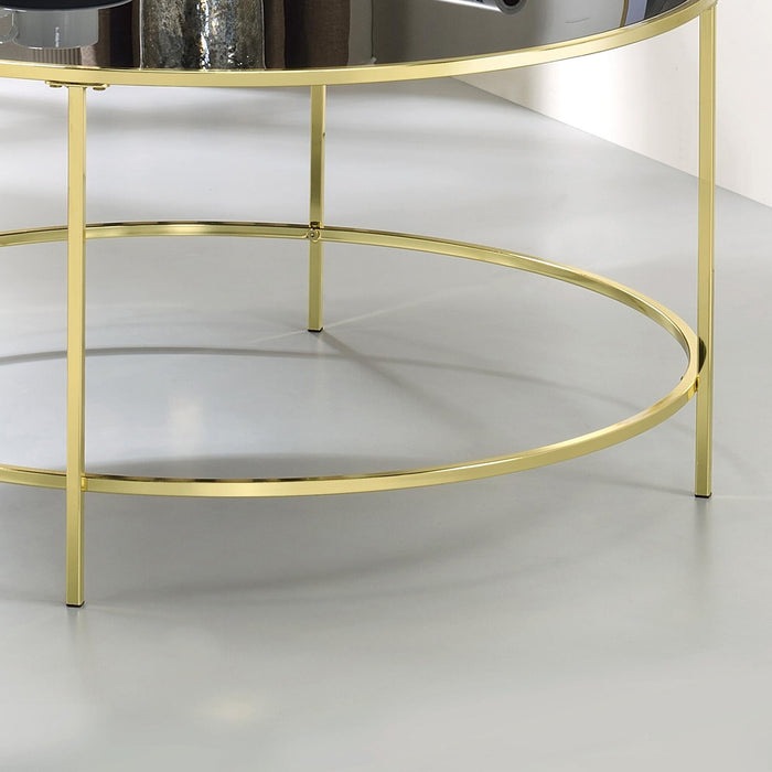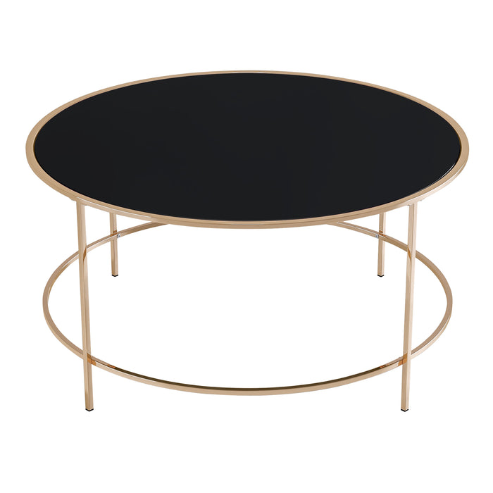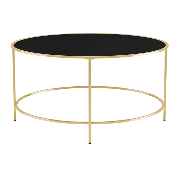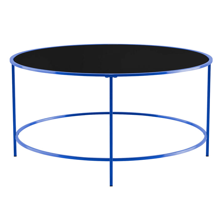 Designed for the minimalist, this contemporary coffee table enhances any living area. In a range of colorful finishes, the table delivers a cool, clean look with a steel base crafted with slim legs and a ring brace that echoes the shape of the tabletop. Tempered glass is both durable and easy to clean, creating a tabletop that's versatile enough for everything.