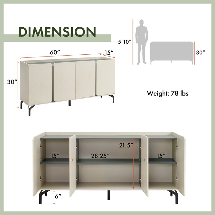 Chandra Modern 60-inch 6-Shelf Dining Buffet and Sideboard with Metal Legs
