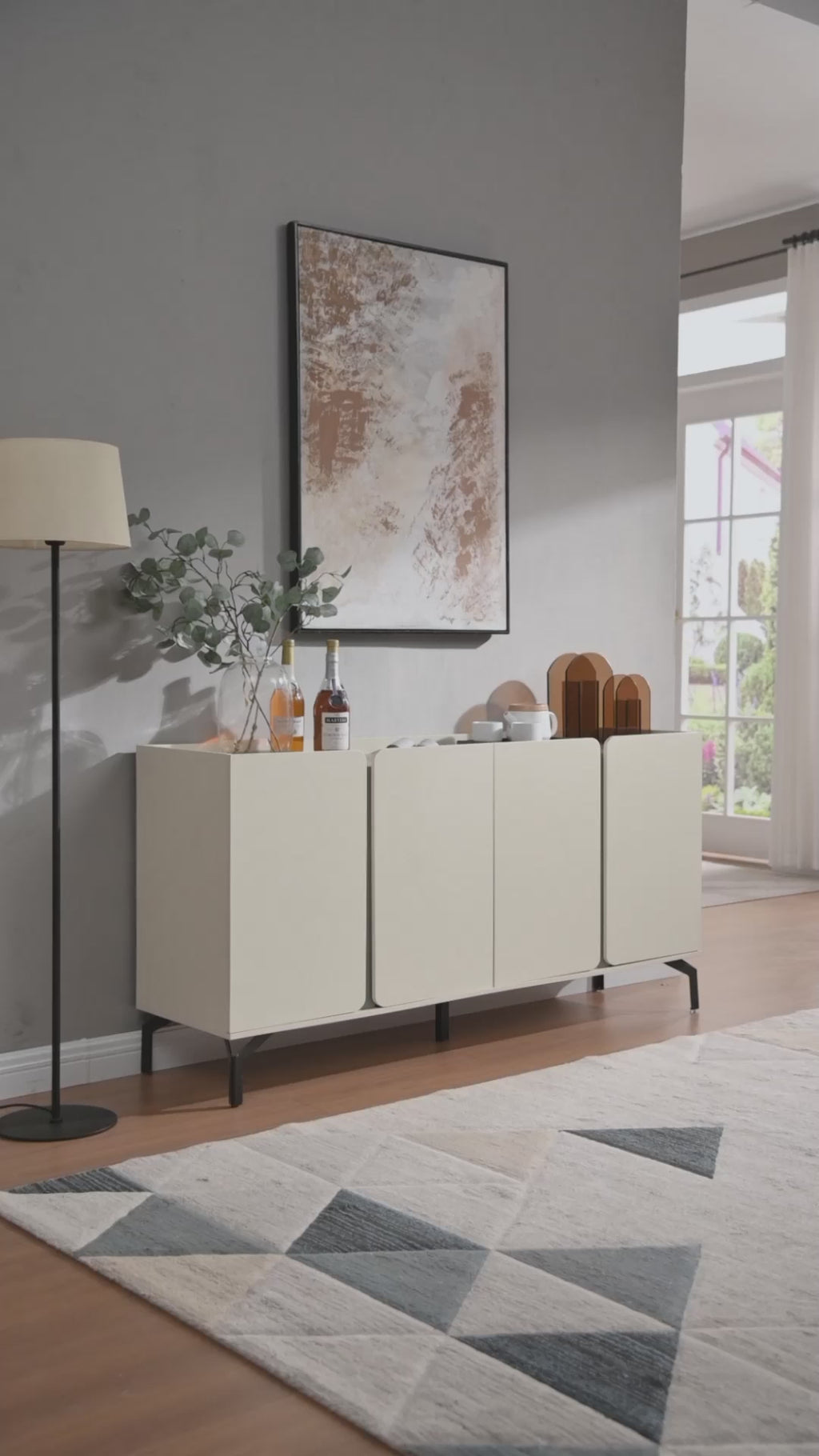 Experience elegance and functionality combined with our stylish buffet and storage cabinet, designed to enhance any dining or living space. Crafted with meticulous attention to detail, this piece offers versatile storage solutions hidden behind chic, rounded corner door handles. The seamless wrap-around top panel complements any home decor, making it the perfect addition to display your decorative items and store essentials in a refined manner.