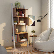 This Contemporary Bookshelf Display Stand is designed to lean on walls with its unique ladder zigzag effect and offers ample cube-like compartments in four tiers. The stand is coated in an attractive two-tone white and walnut finish.