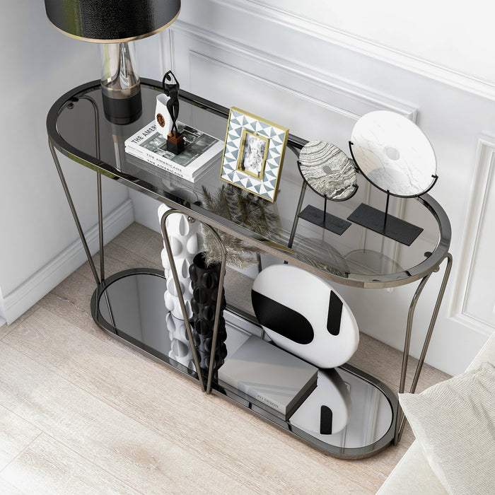 Lyss Modern 48-Inch Glass Top Oval Sofa Table