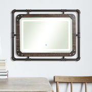 Take your decor to the next level with the rustic design of this rectangular metal and wood wall mirror. It captures attention with a mixed material brown wood finish MDF and sand black steel frame that delivers rich details and dimensionality. A lighted border in the mirror ensures clarity and the best view possible, making this a perfect choice for a bath or dressing space.