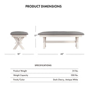 Espinoza Antique White & Grey Linen Upholstered Trestled Dining Bench