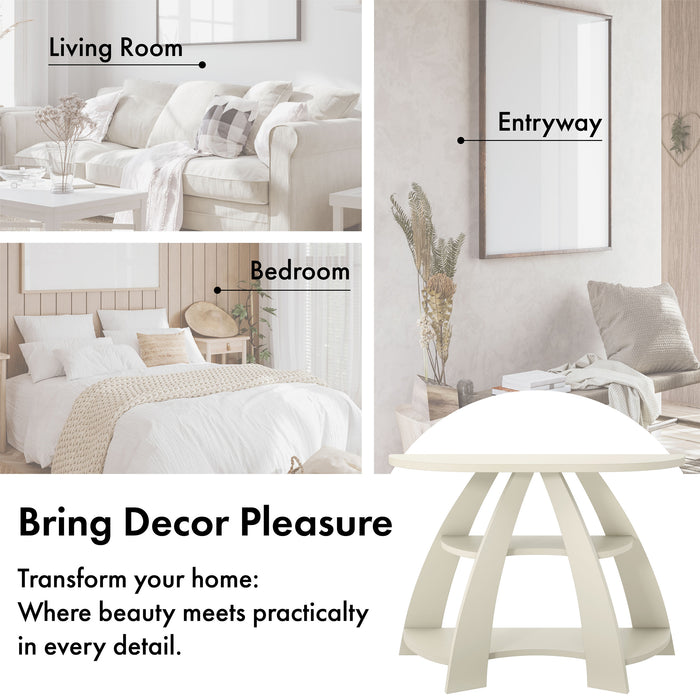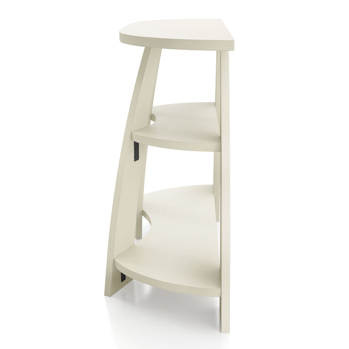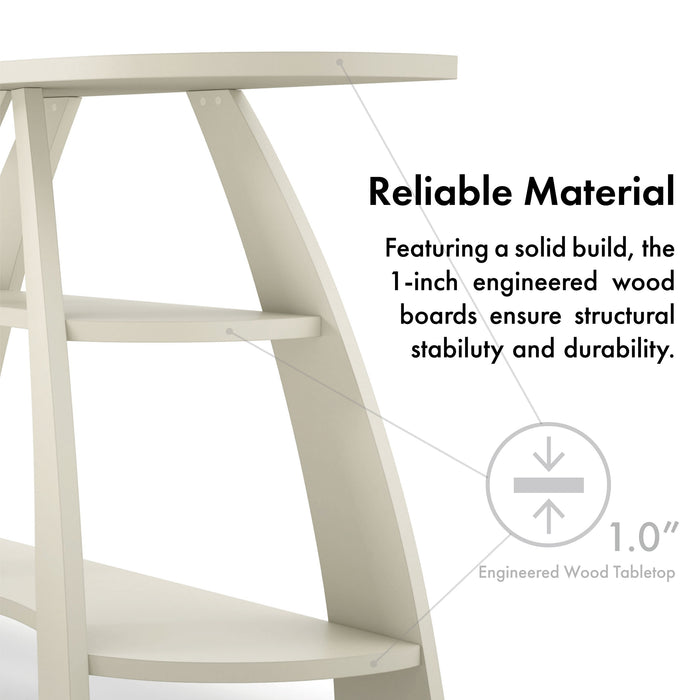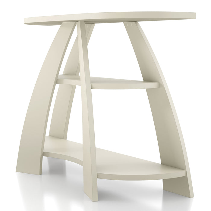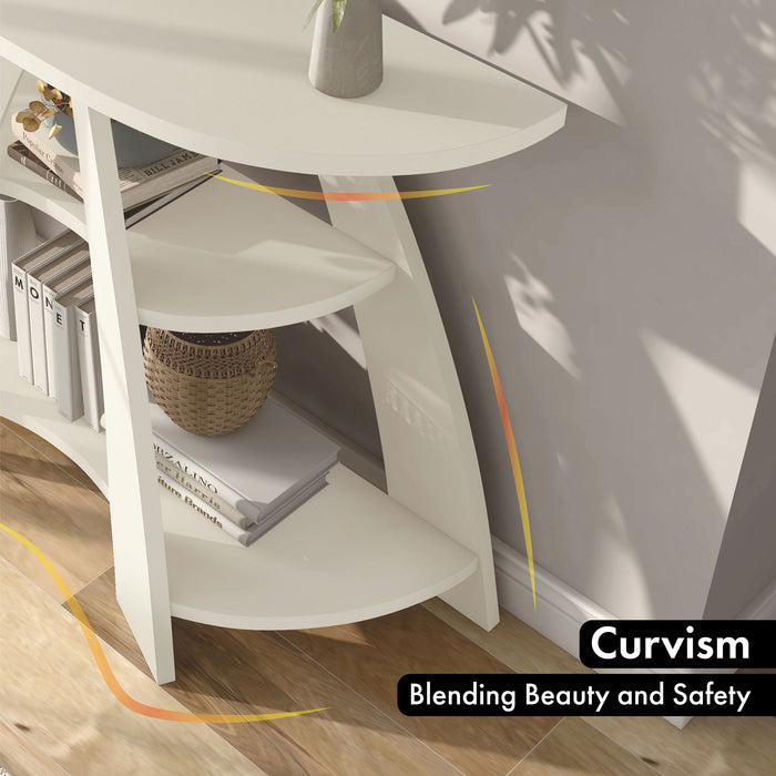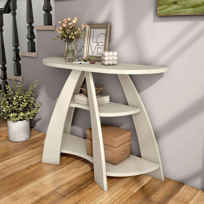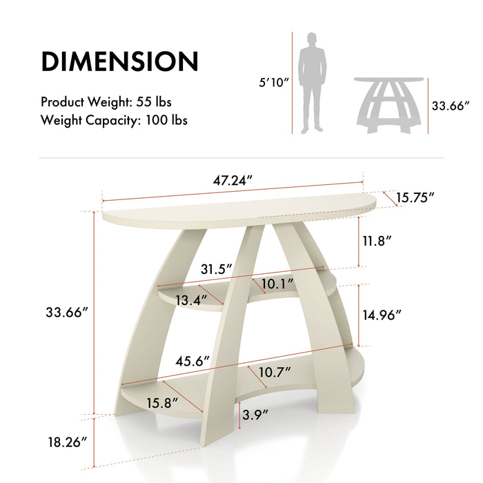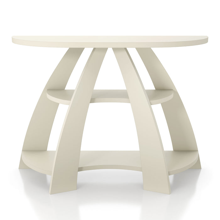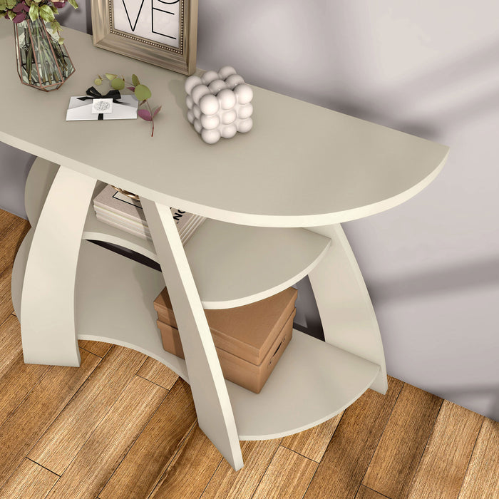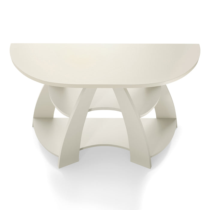 Gina Contemporary Soft White Half Moon Console Table with 2 Shelves and Curved Legs