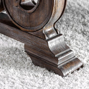 With its dramatic double pedestal base boasting elegantly scrolled details, this table is exactly what your home is missing! An expandable table top with cut corners features floral carved details. Smooth beveled edges and bold bracket style feet complete the look.