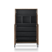 Open up the warm ambiance of your home with this rustic style shoe cabinet for your home. It features cabinet doors that expose the upper open shelving and that conceal additional inside storage, all in a reclaimed oak finish that matches most rustic or transitional decor.