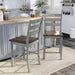 This set of counter height chairs offers seats for breakfast at the kitchen counter. The cut-out handle and ladder back is a country-style design for your farmhouse-inspired kitchen. Hang chair-back decorations on the frame throughout the seasons to spruce up the home.