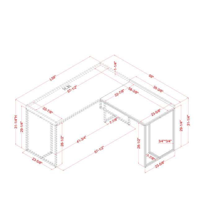 • Large desk: 31.25" H x 59" W x 23.62" D